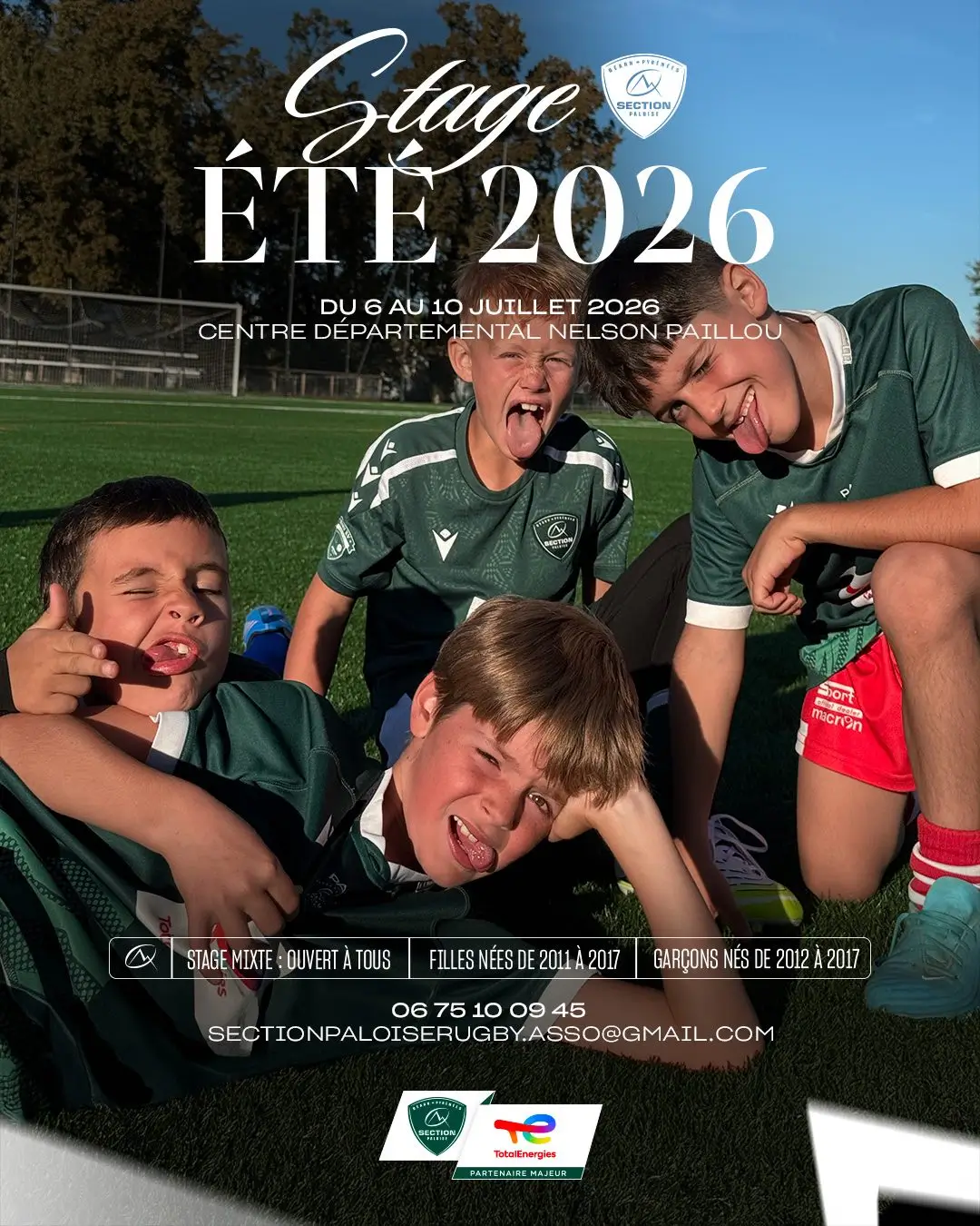 L’Association Section Paloise Rugby propose son tout nouveau stage de rugby d’été qui se tiendra du 6 au 10 juillet 2026 au Centre départemental Nelson Paillou, à Pau.